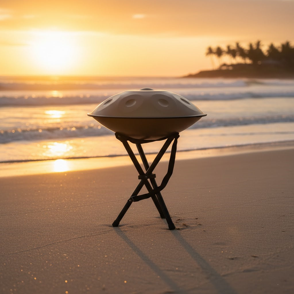 Découvrez cet Handpan professionnel conçu pour capturer l'harmonie et la profondeur. Forgé avec expertise en Acier Nitruré de première qualité, cet instrument arbore une finition Bronze Classique distinctive, mariant l'esthétique chaleureuse à une robustesse supérieure et une excellente résistance à la corrosion. Accordé avec précision à 440 Hz, il s'intègre parfaitement avec tout ensemble instrumental, tandis que sa gamme D Minor Kurd (10 notes) offre une tonalité intrinsèquement apaisante et mystérieuse, idéale pour l'improvisation, la méditation et la thérapie sonore. Les dix champs de notes sont finement travaillés, garantissant une clarté cristalline des harmoniques et un sustain durable. L'instrument est doté d'un anneau de protection périphérique en caoutchouc noir, assurant une meilleure durabilité et une manipulation sans risque. Cet Handpan est le choix idéal pour les musiciens exigeants désirant un son d'une qualité constante et un instrument visuellement remarquable pour les performances live ou les enregistrements studio.