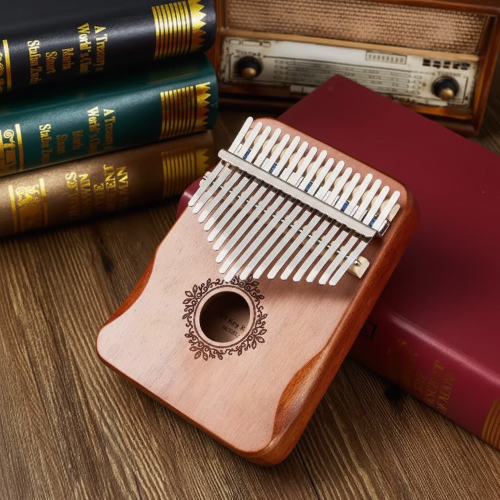 Découvrez ce Kalimba professionnel, un instrument parfait pour l'initiation et l'expression musicale mélodique. Conçu avec une précision soignée, son corps est fabriqué en Bois de Koa Massif (ou Acajou), reconnu pour ses propriétés acoustiques exceptionnelles qui amplifient la résonance et offrent un son riche, chaud et durable. Contrairement aux modèles plats, sa caisse de résonance creuse assure un volume puissant et une belle projection, idéale pour les concerts intimes. Ce modèle standard de 17 touches est accordé en Do Majeur (C Major), la tonalité la plus courante, permettant de jouer la quasi-totalité du répertoire Kalimba et de nombreuses mélodies populaires. Les lames en acier minéral de haute qualité portent des notes gravées, facilitant l'apprentissage et le jeu rapide. Son design intègre un motif floral discret autour du trou de résonance, ajoutant une touche d'élégance artisanale. Ce Kalimba est le choix idéal pour les débutants avancés et les musiciens cherchant un instrument mélodique facile à prendre en main avec une sonorité profonde et authentique.